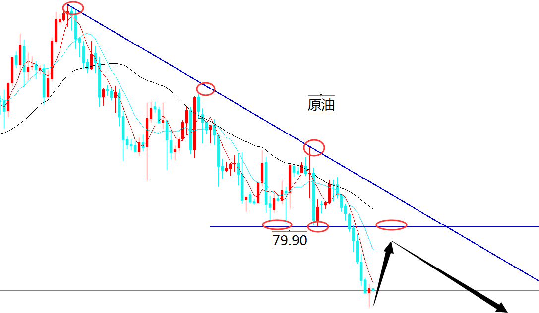 现在的原油是一个单边跌的行情,不要猜测底,也不要拦截多,小反弹小空,大反弹大空吧,原油大跌不言底,昨天我们在79.50布局的空再次大赚,今天的原油反弹79.50还可以继续空它,79.90的已经是强压力带了,今天的多头反弹是很难再次翻越这个位置的,