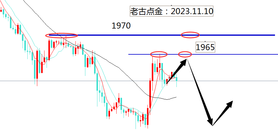 黄金上面的分析图是今天的思路,白盘我们关注昨天的高点位置1965附近干空吧,这个位置是日线5日线的压力位置,也是多空今天必须博弈的位置,另外的压力是1970,它是最后的防线,上去了就V字了,另外1944还不确定是这波下跌的终点。
