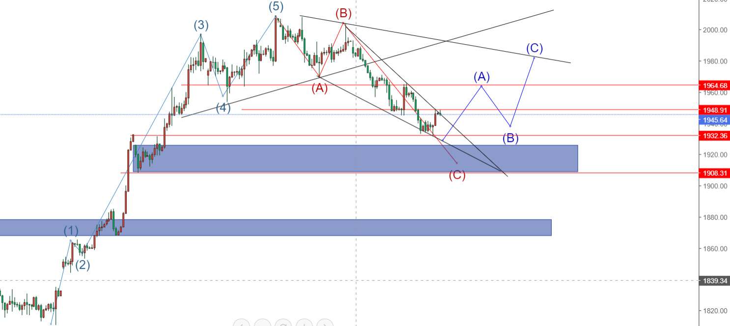 浪型:关注c-5末端走势,有可能转入B调整,关注接下来时间是否继续跌破延续新低。其次就是站稳1960上方反弹修正。