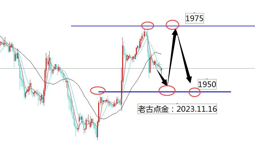 昨天的黄金冲击到了1975开始回落,日线没有有效站上1970,大周期的空头已经是主旋律,毕竟上周的黄金周线是大阴线,多头要继续发挥必须在日线征服这个1970,而且昨天日线还出现了小的墓碑,今天在1975附近会有大量空头杀入,但是短线的多头3天的反弹已经在小时级别形成了多头趋势,今天的思路我们看一个区间震荡,白盘关注1950-1975,突破任何一方将跟随趋势可以追单对待。