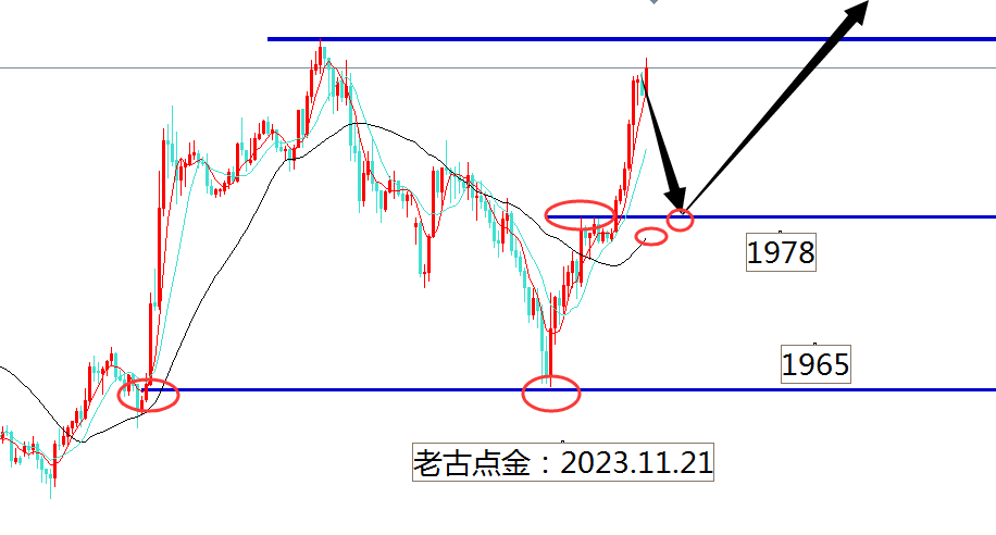 这两天的黄金有点浪,不过整体还是多头,昨天晚上我们在1974布局的多单有点遗憾,今天思路依然看涨,继续找多的机会,看涨理由主要是日线和周线,上周周线是收大阳线,而且日线的均线全部翘头,形态也是呈现上攻状态,昨天的回踩有点大,但是很快收回失地,而且多头日线收了一个新的看涨信号,今天的早盘关注1993得与失,回踩是我们再次布局的机会,顺趋势继续干多吧,这波大周期的多头还没有顶可以言。