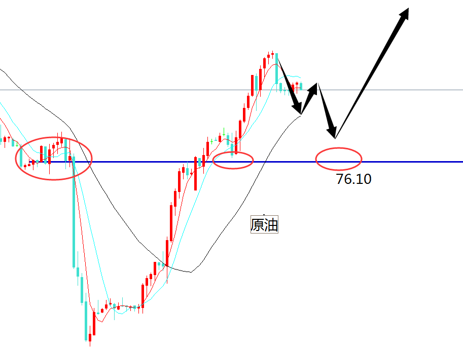 原油专治各种不服,周五开始这波72.15反弹到了78.40,只用了两个交易日,中途无任何回撤,原油我们思路还是跟随多头,今天继续看涨,回踩考虑继续多它,不考虑任何空了,就日线形态上看,原油还有反弹空间,而且还有反弹的动力,大涨的单边不言顶,回踩是我们上车的机会。