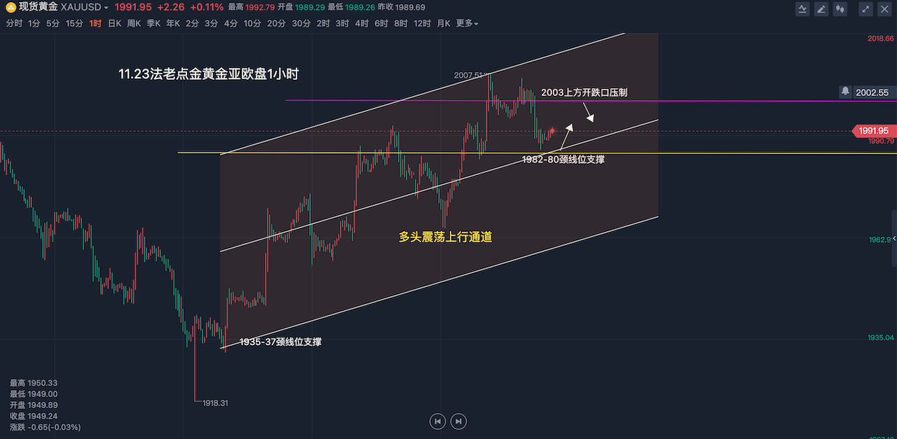 11/23 09 : 2511月23日【黄金原油】亚欧盘:黄金昨2005空遗憾未能进场,凌晨压制回落破底收盘迎调整中阴,今日反抽2003先空再看回落,原油昨日77.7空遗憾未能进场,空头单边下行破底反抽收长下影线,今日依托74-78区域继续看多空宽幅震荡运行节奏!