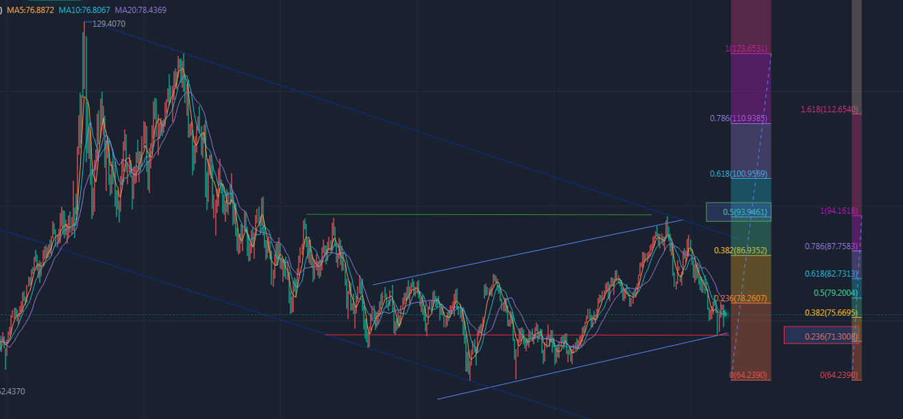 11/23 11 : 55原油我们前面72.8多上行78一线,在77.8止盈,有50美金盈利,昨天77.2做空,最高76.9上方,差0.2没到进场范围,回撤最低73.8,随后晚间我们74.2多看76-77,但是最终还是最低给到74.5,也是相差0.2到0.3没有能够进场,走势预测没错,但是进场都是差一点点没能成交,今天等75.1左右0.1多。