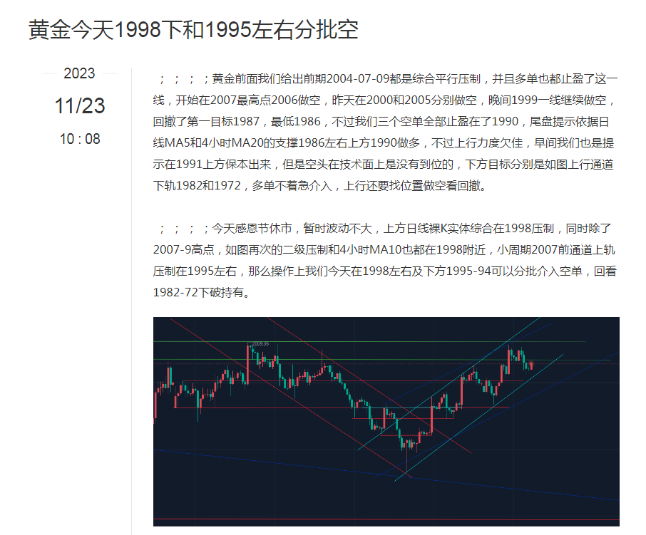 11/24 21 : 00黄金分析不变,2002不能站上,今天1998左右和1996空不变