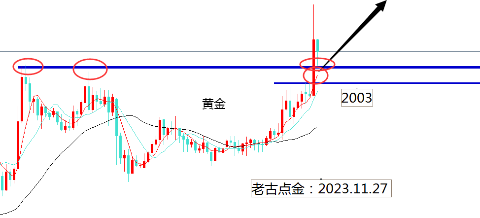 黄金早盘快速拉升,启动的位置是2001-2003,之前的形态支撑是2003附近,日线的5日线已经上到了1998附近,也就说,今天的白盘2001和1998已经是日内强支撑,白盘大家可以依托2003上面找多的机会,我们已经在2009直接干多了。