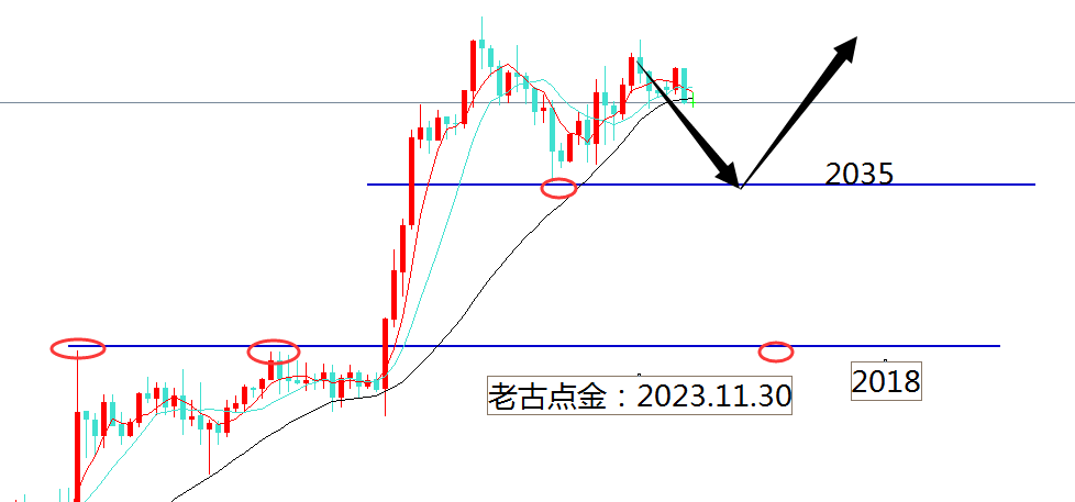 黄金多单机会还是在2035附近,如果靠近2030还可以继续接多,这个位置是日线5日均线位置,如果破了2030这个位置,我们需要思考多头是否结束了,毕竟价格到这里了就已经调整了21个点了 ,短线也可以反手空看回落了。