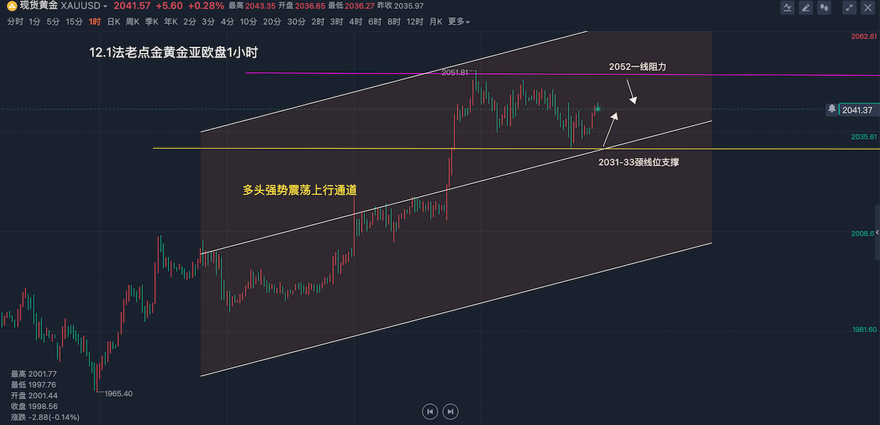 12/01 09 : 3712月1日【黄金原油】亚欧盘:黄金昨日2041空遗憾未能进场,日线级别调整收阴依旧不改多头强势形态,今日回踩依托2031一线继续主多再看上行,原油昨日78.3多78.1多完美止盈利润,短期反弹告一段落,今日反抽依托77.5一线先空再看震荡回落