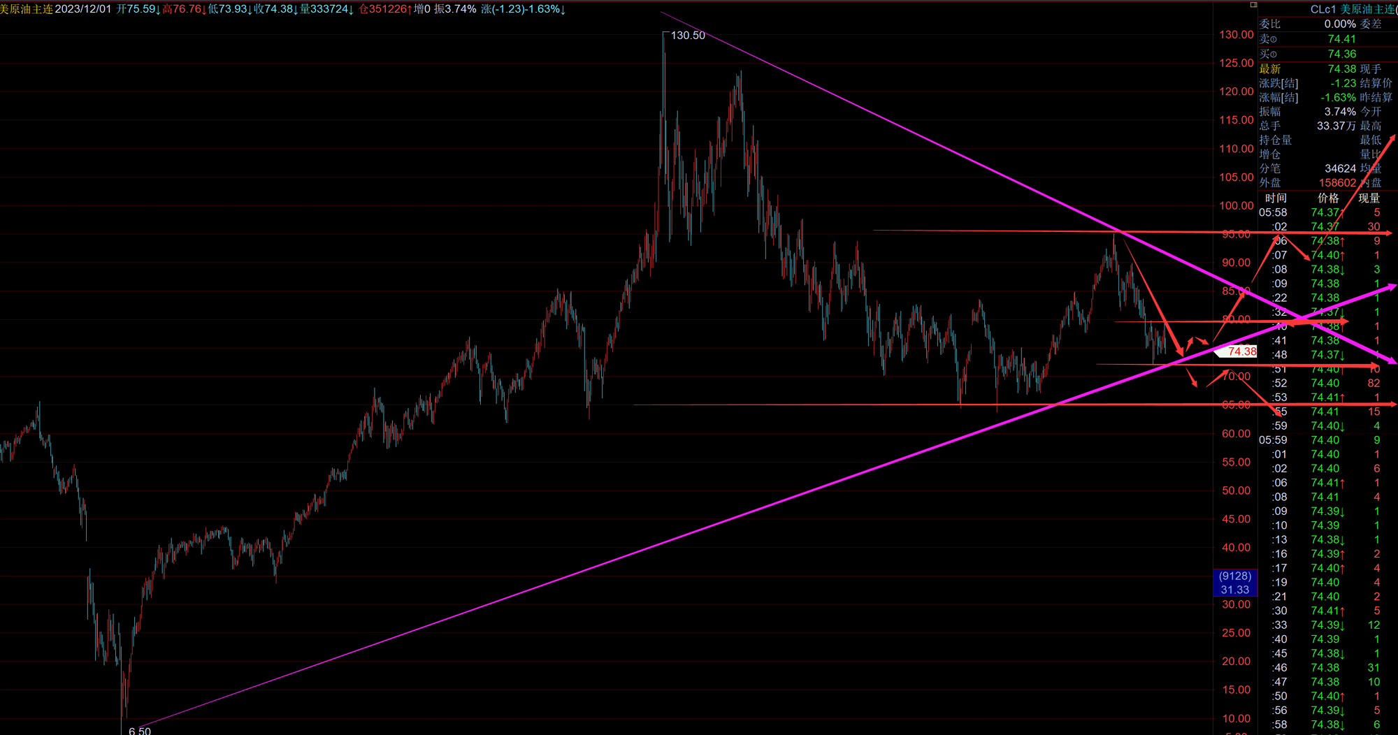 本周原油整体是走了个小冲高回落,之前强调本周目前从结构上来看是整体14号转折,之后看空到1号或5号,整体看区间突破来进一步的确认思路,而本周先是受欧佩克会议推迟等消息,出现小回弹,在79.75这边依旧受压,再次回落。最终收于74.364美元,从基本面来看造成本周原油价格持续震荡的原因如下: