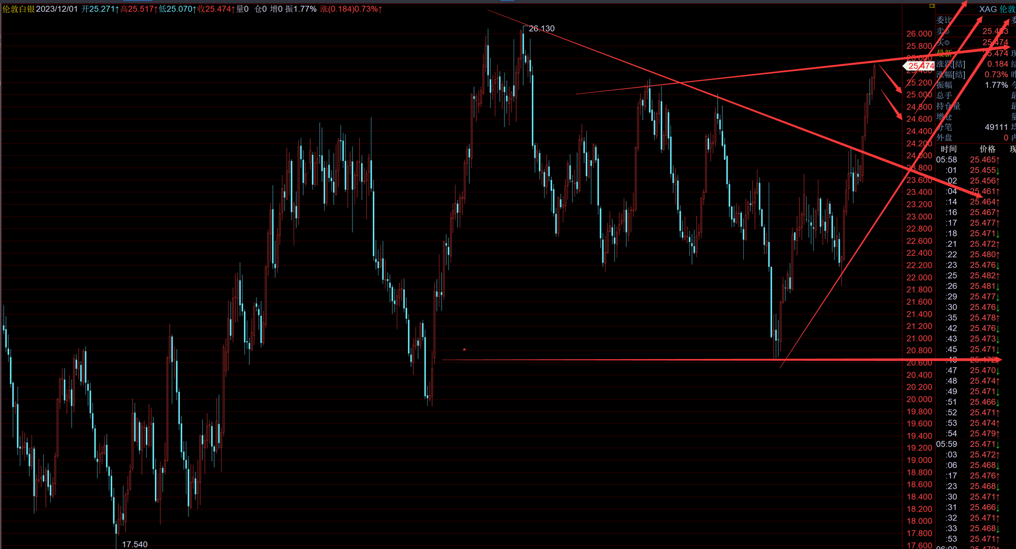 除了以上数据和大事件,还需关注巴以局势,若有新进展也将对市场造成一定影响。当下全球动荡爆发点是巴以局势和乌克兰局势,从以上的角度我认为整体未来还是看多黄金白银的更大。