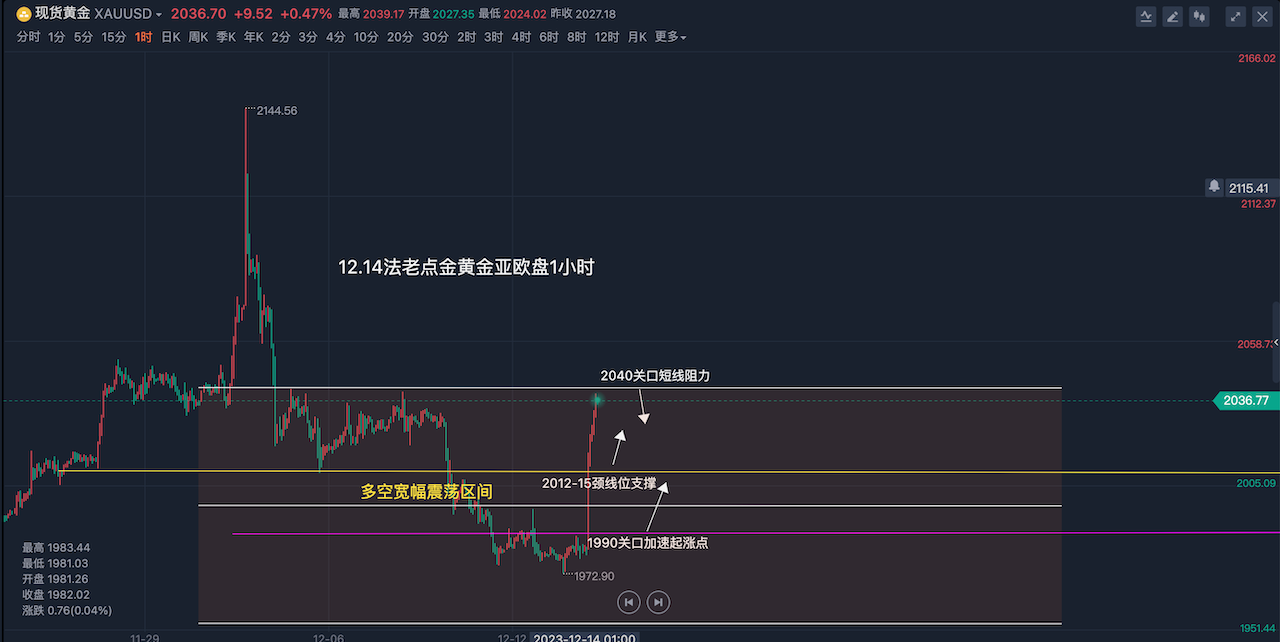 12/14 09 : 1112月14日【黄金原油】亚欧盘:黄金昨1986空完美止盈,美联储转向“鸽派刺激金价强势突破2030,今日企稳2012一线先多再看涨,原油昨日69.2空68.8止盈,今日反抽依托70.8一线继续先空再看跌