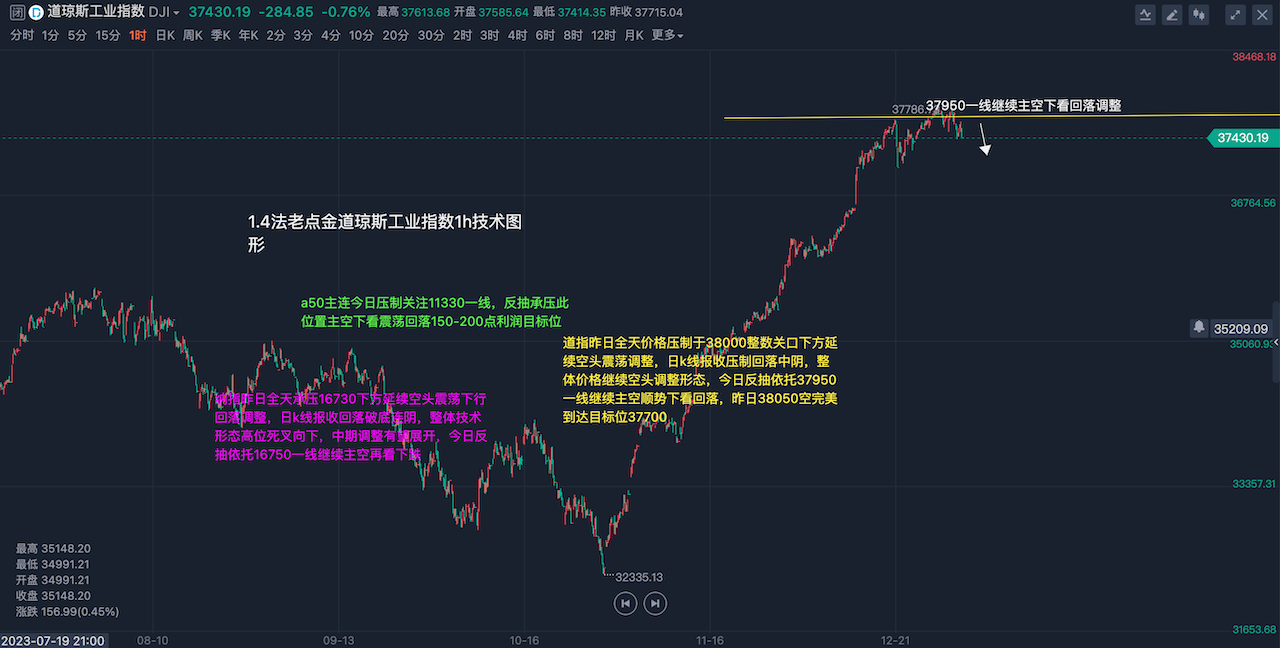 道指昨日全天价格压制于38000整数关口下方呈现弱势震荡整理,晚间美盘加速向下击穿37800关口并延续下行至37650附近弱势收盘,日k线报收压制回落震荡中阴,整体价格在见阶段高点38100关口后出现震荡调整形态,短期价格跌破5日均线支撑正式进入到空头调整形态中,今日反抽依托37900一线继续主空再看顺势下行回落,下方目标位继续关注破底,纳指昨日承压于16730关口延续弱势震荡调整,晚间美盘加速向下击穿16600整数关口并延续回落至16520一线报收震荡中阴,连续三个交易日以压制回落调整收盘,整体价格承压17160关口出现阶段调整形态,纳指短期头部形态出显,今日反抽依托16700关口先空下看回落,同时近期多空强弱分水岭17000整数关口,日线级别未突破并站上此位置之前继续保持压制偏空为主,下方目标位继续关注破底,短期道指纳指双双迎来调整形态,在未突破并站上近期多空强弱分水岭一线之前,任何反抽均是做空机会,保持顺势参与主基调不变,具体操作策略盘中实时提示,及时关注。