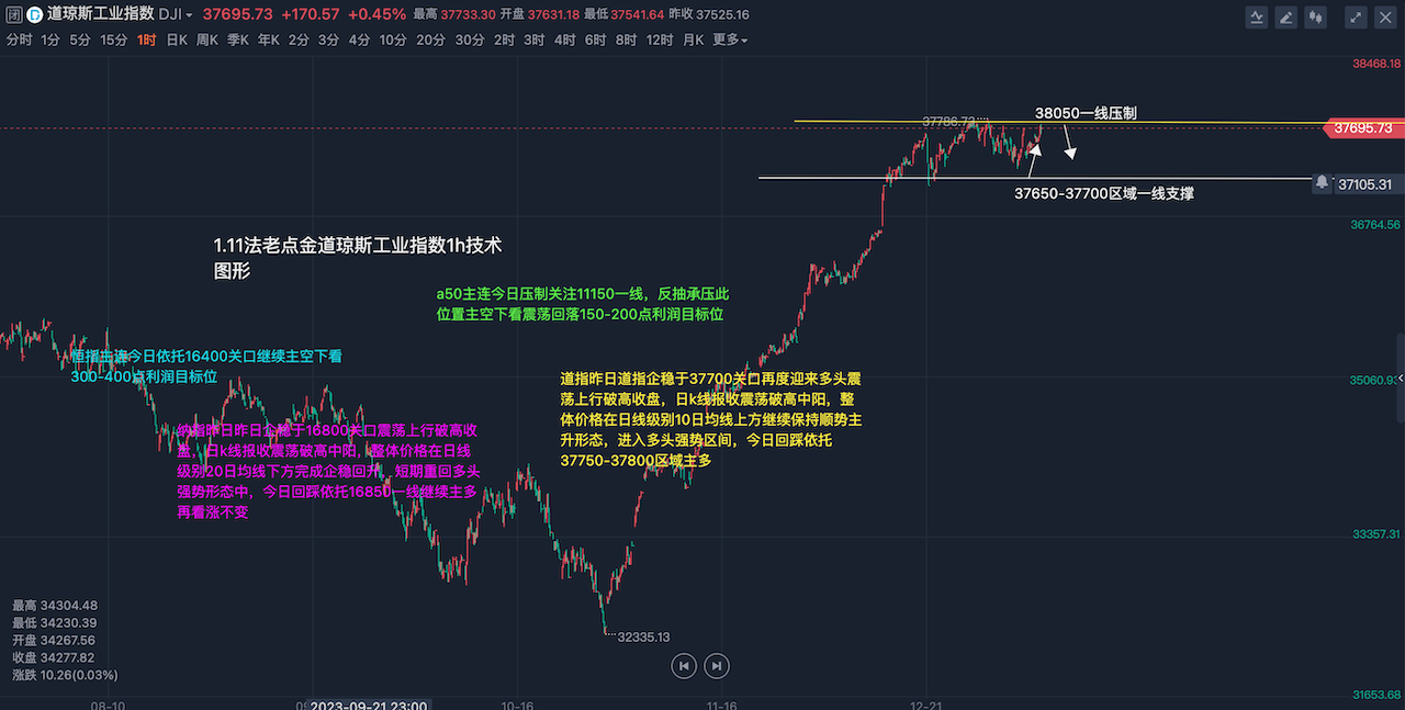 道指昨日道指企稳于37700关口再度迎来多头震荡上行破高收盘,日k线报收震荡破高中阳,整体价格在日线级别10日均线上方继续保持顺势主升形态,进入多头强势区间,今日回踩依托37750-37800区域继续主多顺势看涨不变,上方短线阻力关注38100关口,欧美盘冲高承压此位置可短空一次再看震荡回落,短线整体价格企稳37600关口保持顺势低多主基调不变,顺势参与为主,做空只能关键点位进场,且快进快出,不恋战,纳指昨日昨日企稳于16800关口震荡上行破高收盘,日k线报收震荡破高中阳,整体价格在日线级别20日均线下方完成企稳回升,短期重回多头强势形态中,今日回踩依托16850一线继续主多再看涨不变,短期道指纳指调整形态结束重回多头强势区间内运行,今日给到回撤继续跟多上看反弹延续,做空需等待关键点位进场且快进快出,不恋战,及时关注。