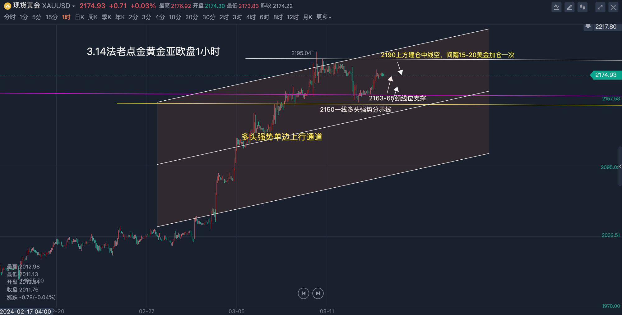 03/14 09 : 213月14日【黄金原油】亚欧盘:黄金昨日企稳2157关口迎震荡回升修复中阳收盘延续多头强势,今日回踩依托2165关口先多再看反弹回升,原油昨日79.5空快速止盈利润,日线级别强势中阳回升重回5日均线上方,今日回踩依托78.7关口继续主多再看反弹