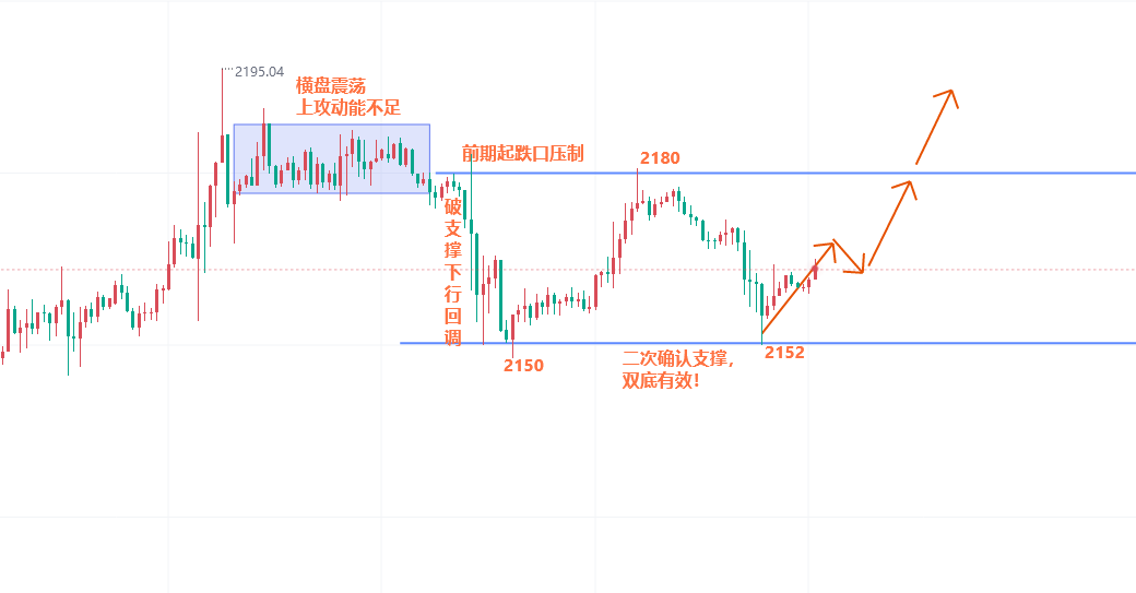 连续两次的回踩视乎是对2150一带支撑的确认,在前面的整个上升行情中,每每修正都是二次确认支撑后再度走高,那么本次对2150一带的二次确认能不能继续引领价格上行,让我们拭目以待。操作上早间先做入场布局,看一波反弹,若能顺利走高,留意2180突破情况即可。