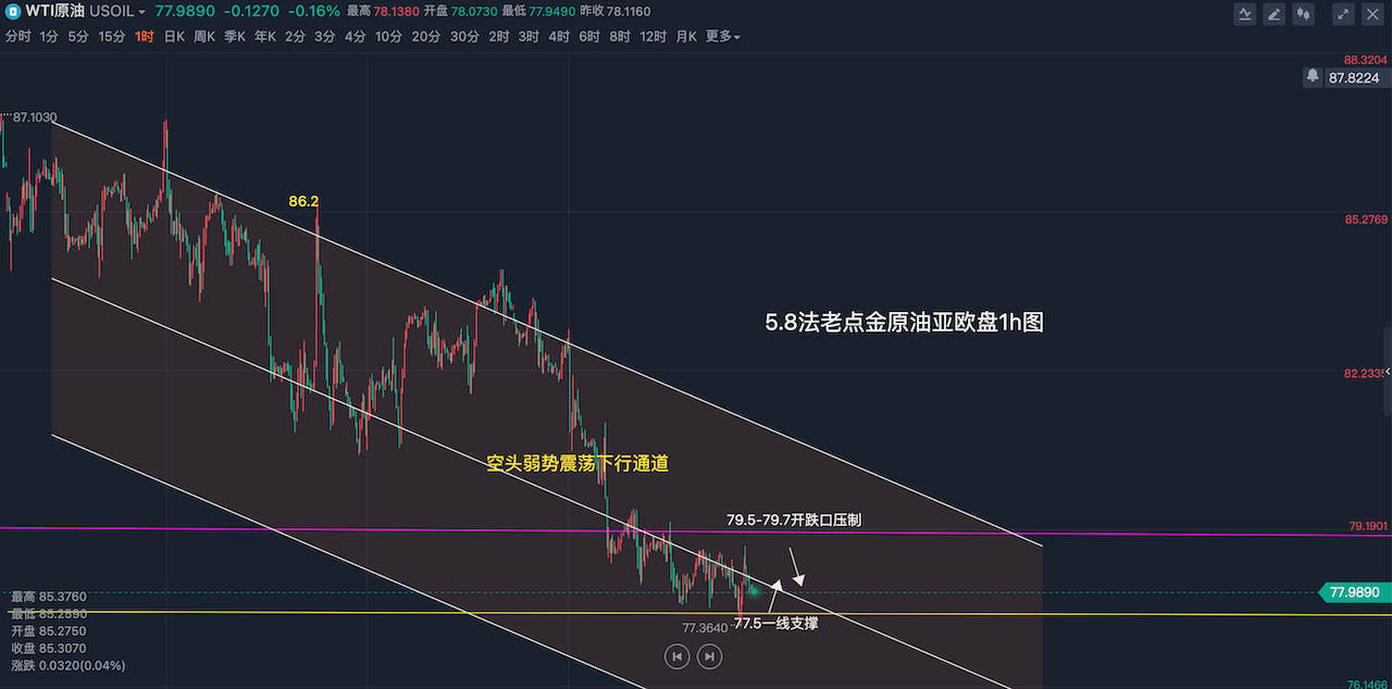 05/08 08 : 485月8日【黄金原油】亚欧盘:黄金昨2310多2319扫止盈,短线进入多空窄幅震荡区间整理,今日依托2327-2305继续做区间,原油昨77.9多完美止盈收割利润,今日回踩依托77.7关口继续先多看涨