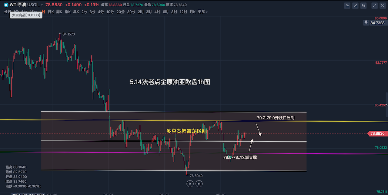 05/14 08 : 555月14日【黄金原油】亚欧盘:黄金昨日2338多2349空完美双收,短线压制2360下方再度呈现弱势震荡整理,今日反抽依托2347一线继续先空看跌,原油昨日企稳78关口迎探底回升震荡收阳,今日回踩依托78.5一线先多再看反弹回升
