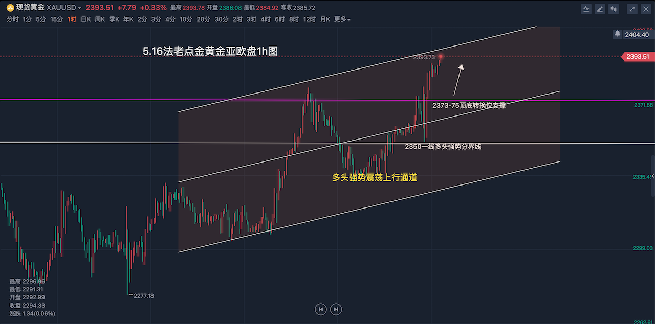 05/16 08 : 295月16日【黄金原油】亚欧盘:黄金昨日2363多一单到底直接扫止盈,今日回踩依托2373继续先多看涨不变,原油昨日77多77.8扫止盈,今日回踩依托77.9关口继续先多看反弹回升