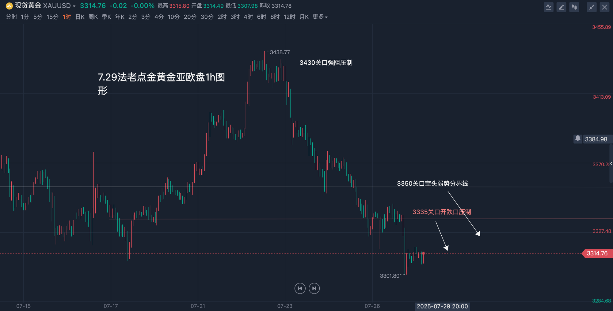 07/29 09 : 357月29日【黄金原油】亚欧盘:黄金昨日承压3345关口震荡下行破底延续弱势震荡格局,今日反抽依托3330继续主空顺势下看回落不变,原油昨日探底回升反包中阳重回66关口上方重回多头强势区间,今日回踩依托66一线先多再看反弹回升