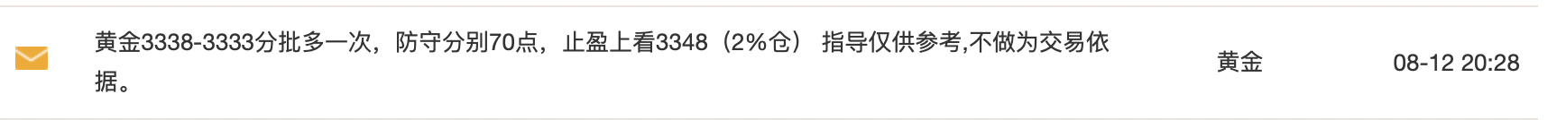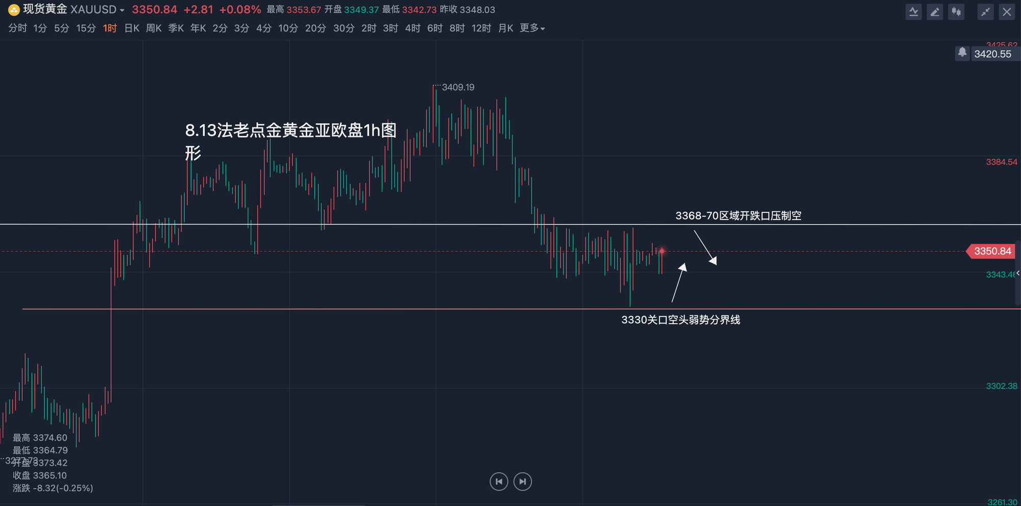 08/13 10 : 038月13日【黄金原油】亚欧盘:黄金昨日压制震荡测试3330关口支撑有效,今日企稳3330关口先多看探底回升修复,低位勿追空。原油昨日64.3空63.5扫止盈,今日反抽依托63.8继续主空顺势下看回落不变
