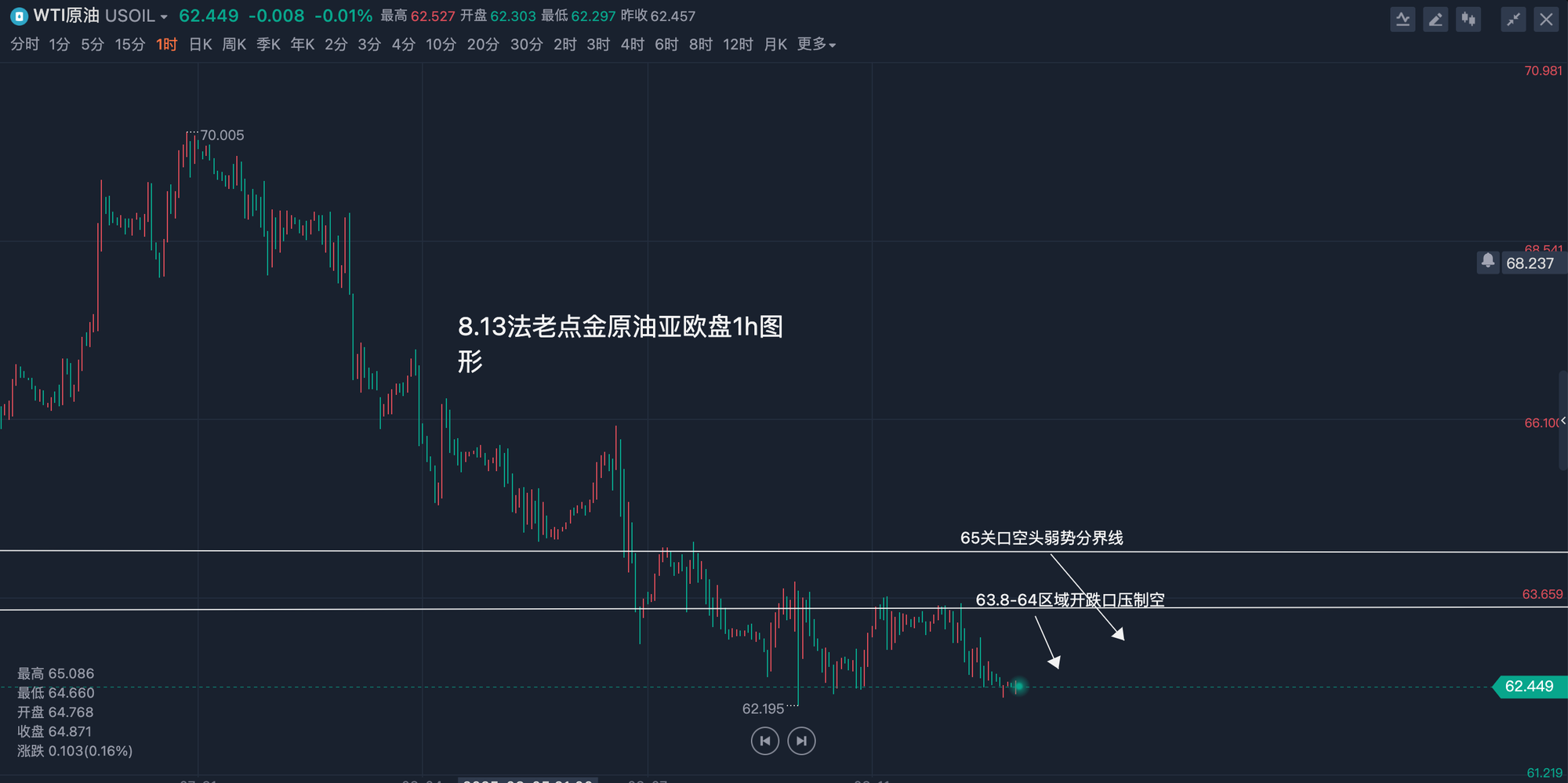 08/13 10 : 058月13日【黄金原油】亚欧盘:黄金昨日压制震荡测试3330关口支撑有效,今日企稳3330关口先多看探底回升修复,低位勿追空。原油昨日64.3空63.5扫止盈,今日反抽依托63.8继续主空顺势下看回落不变