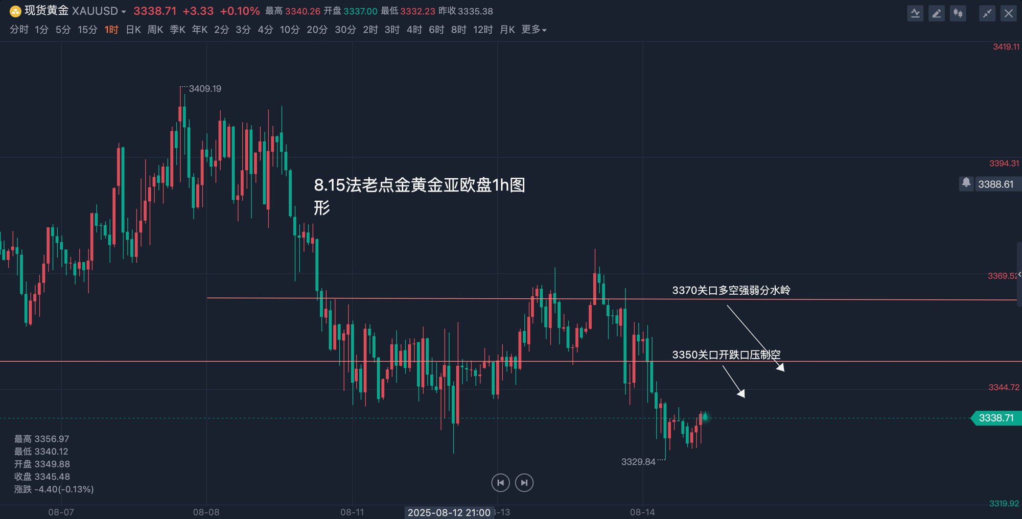 08/15 10 : 138月15日【黄金原油】亚欧盘:黄金昨日3358空3348扫止盈。今日反抽依托3350继续主空顺势下看回落不变。原油昨日依托62关口探底回升修复重回63.5上方不改整体压制偏空节奏,今日反抽依托64.3继续主空顺势下看回落不变。