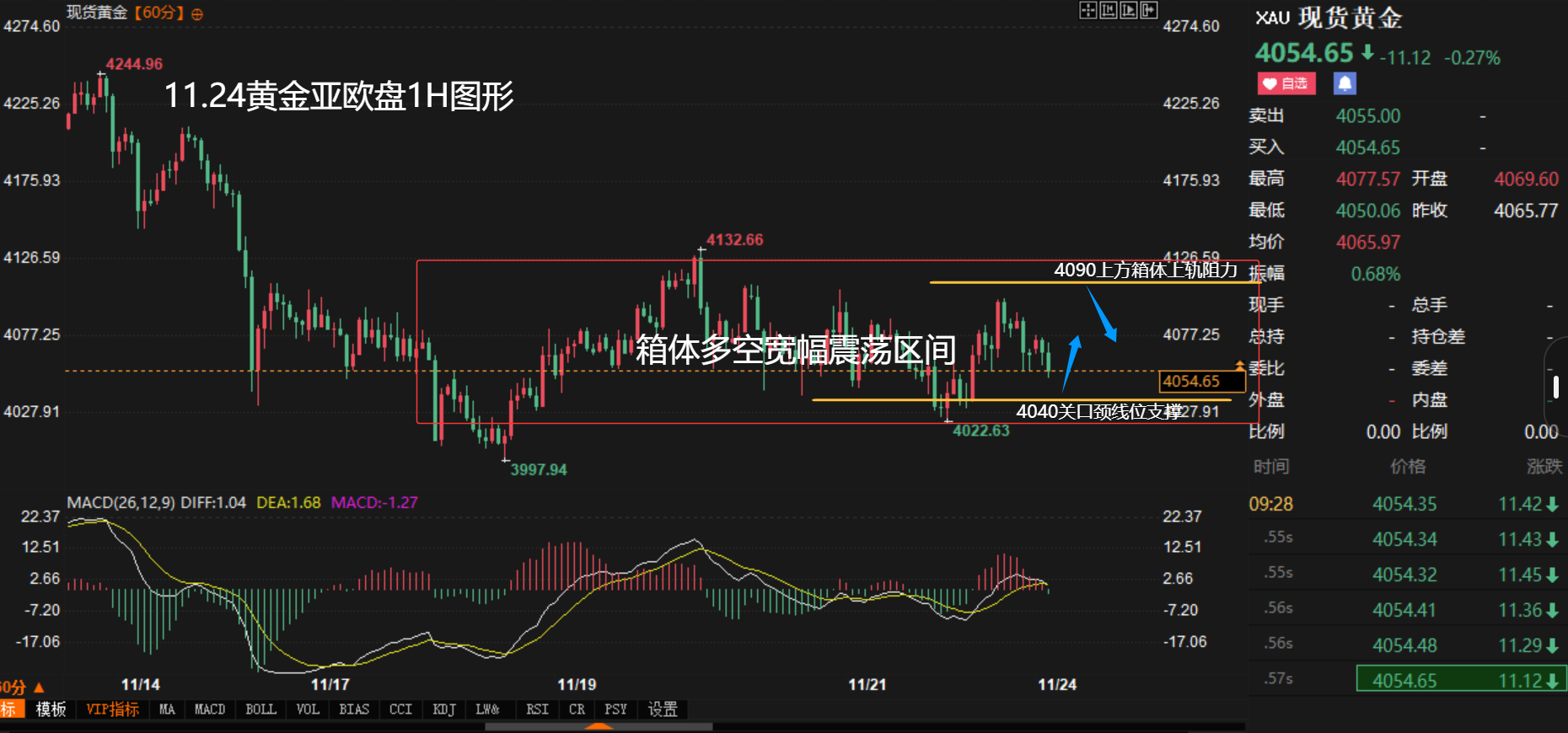 11/24 09 : 3411月24日【黄金原油】亚欧盘:黄金上周五4060空4040扫止盈。日线级别震荡十字K不改整体多空窄幅震荡格局,今日依托4035-4095区域高空低多循环参与依旧看震荡,原油上周五57.6多58.5扫止盈,今日企稳57关口继续先多再看反弹回升
