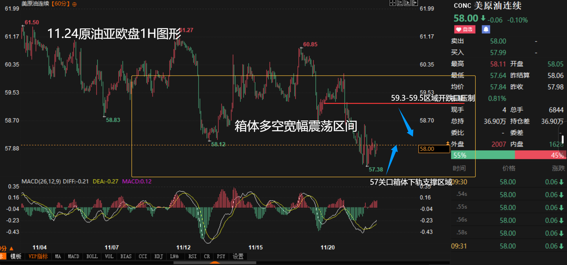 11/24 09 : 3611月24日【黄金原油】亚欧盘:黄金上周五4060空4040扫止盈。日线级别震荡十字K不改整体多空窄幅震荡格局,今日依托4035-4095区域高空低多循环参与依旧看震荡,原油上周五57.6多58.5扫止盈,今日企稳57关口继续先多再看反弹回升