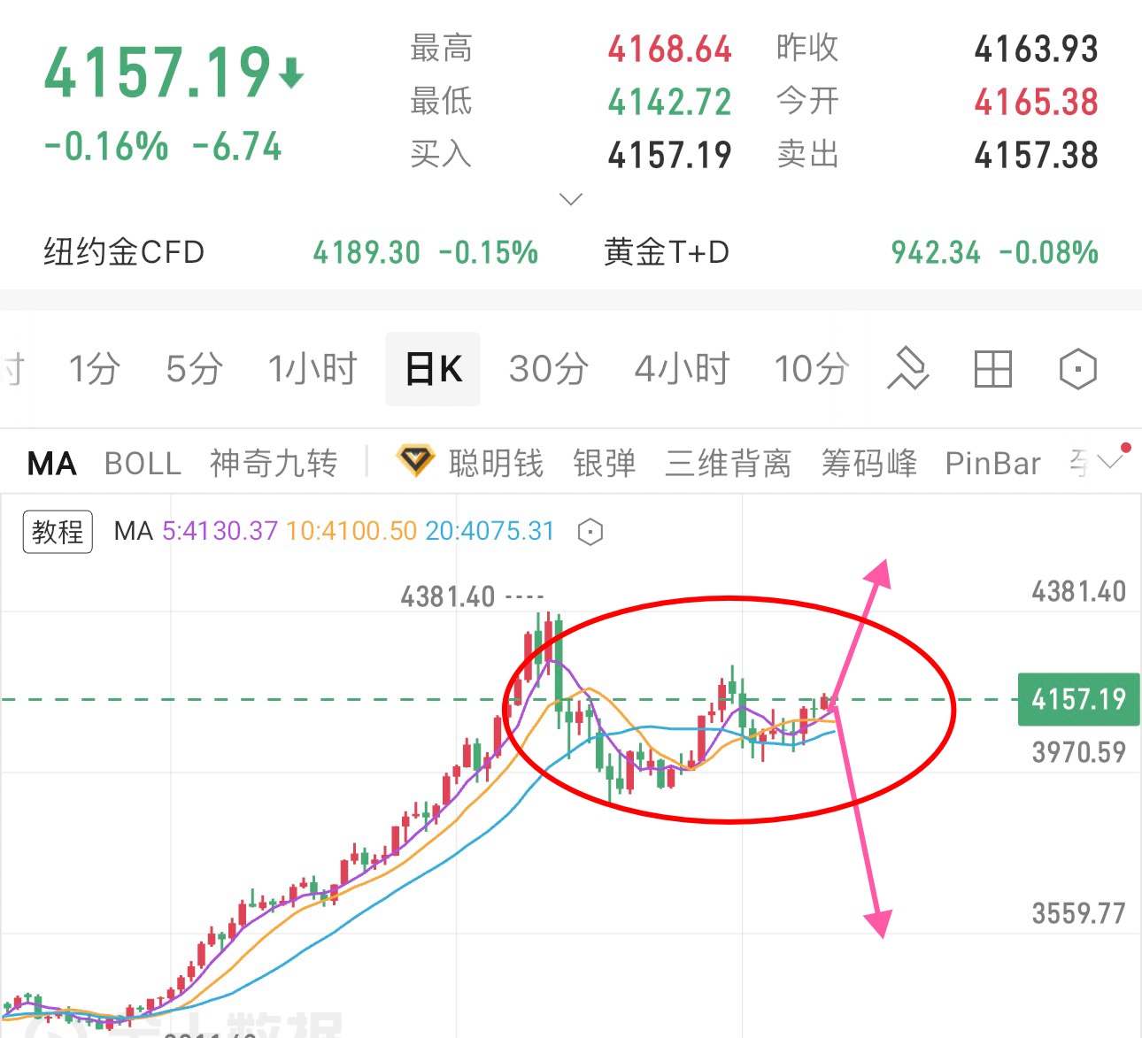 今日周五,黄金早盘需要关注4160是否企稳,企稳则有望再度测试4200、4230关口,反之,黄金短线回落4100有望!