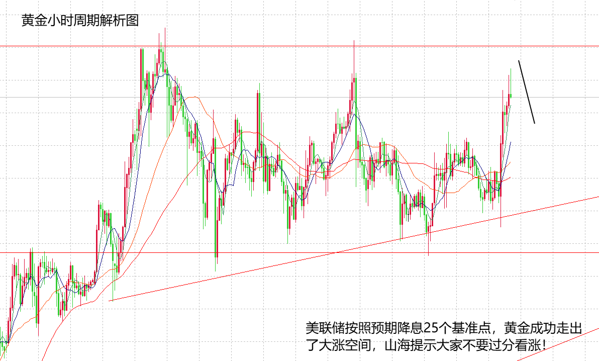 本次美联储公布继续降息25个基准点,这是今年美联储第三次降息,鲍威尔讲话内容偏鸽,并且提示今年大概率还会降息一次,市场反应比较剧烈,美元走出大跌空间,黄金走出预期的大涨,目前最高在4247附近,完全符合看涨,做多的思路。周三提示大家4193做多,可以看到4225高点,成功止盈。白银继续大涨,不算刷新高点,还是维持看涨不追涨,不猜顶,不做空的思路,继续看市场变现。今天关注失业金数据影响!