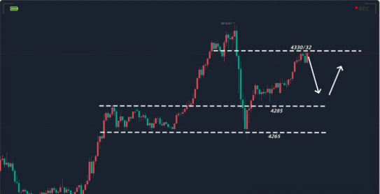 具体来讲:先借助早间冲高的机会,依托4330~4332压制先看回落,待回撤到位后,再择机布局低多,博弈反弹行情,这里就要留意欧美盘的情况,回撤后再视情况反多!