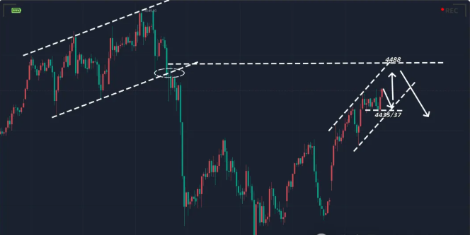 一方面,亚盘时段依然围绕回撤跟进,补过分的去追,留意4435/37位置机会做一次跟进,下方分解点4428早间低点,看一波上行,上方4468/88,而一旦出现回落破低跌破4428的情况则反抽出局;