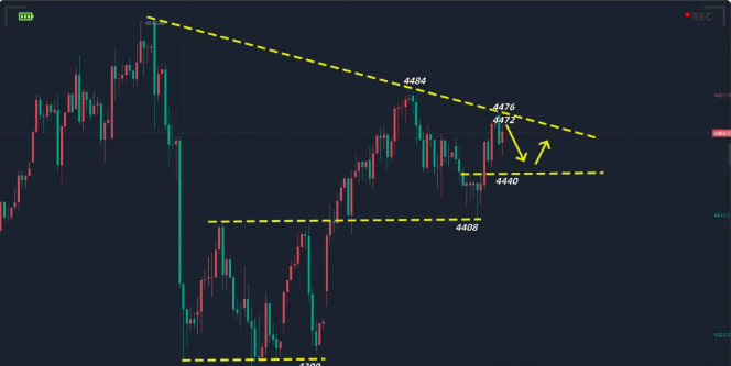 短线关注4472压制先空,下看4450/40位置,回撤后视情况再做反手!
