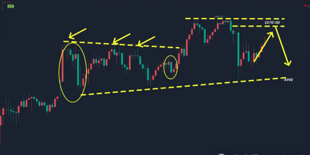 昨日盘面,国际金在早间高开高走之后形成了冲高回落。而在午后时段以及欧盘时段是反复承压,三次承压之后,晚盘我们给了看回落的思路,但是止步在4995位置,并没有形成有效的下跌,尾盘反而出现了拉升,也就是说我们的空单布局出现了打损。而在打损之后,黄金进一步上涨到5080之上,但是夜间盘面再度形成了冲高回落,盘面价格再次回到了昨日白盘震荡的区间。那么连续两次冲高回落,目前行情似强非强的感觉,上升显得比较虚,日内就要震荡的出现。