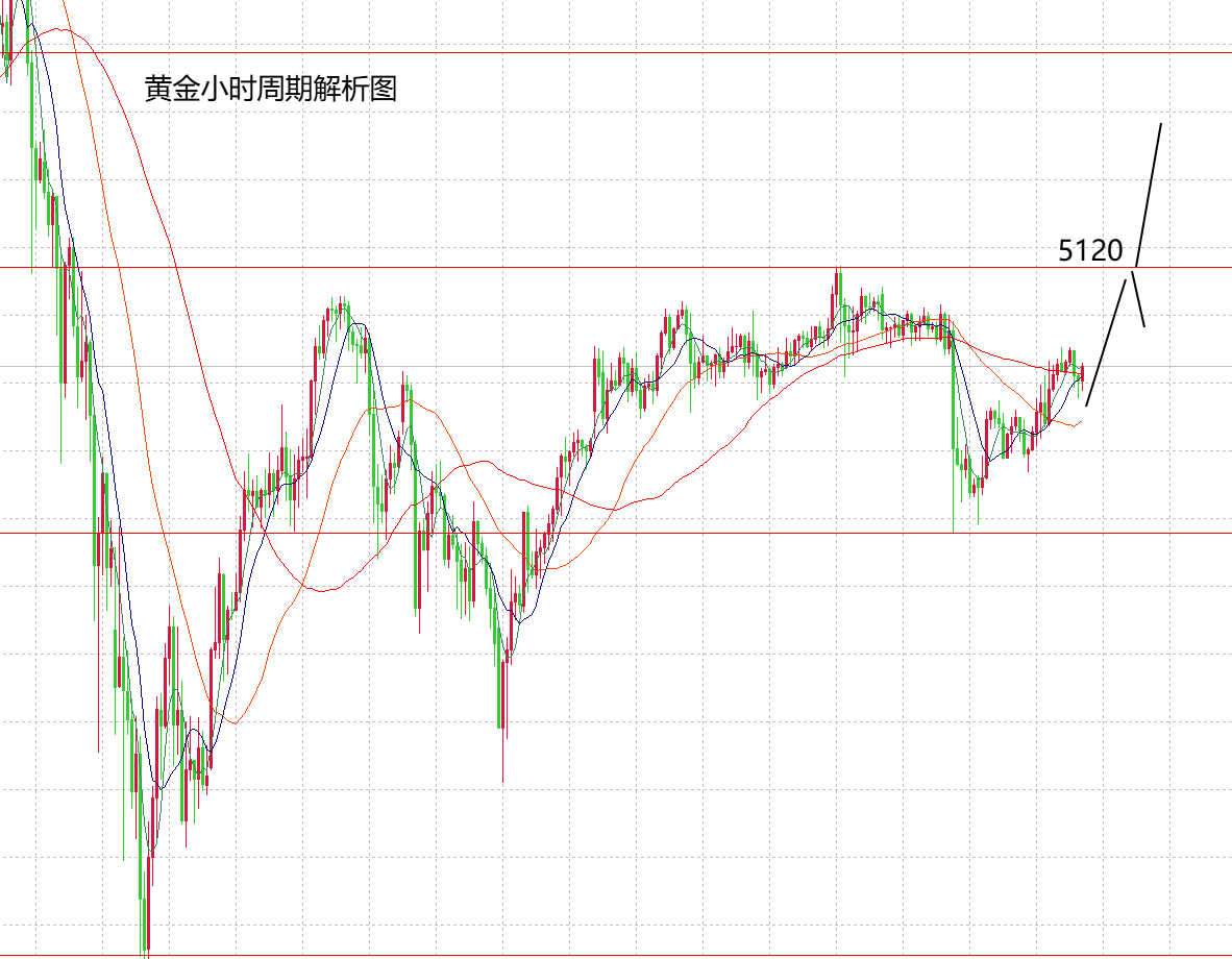 上周黄金山海跟大家分析过在基本面不变的情况下,黄金的上涨趋势不变,需要市场刺激,突破站稳5100后就可以看到多头趋势的爆发,经过全周的慢涨,最高在5120,看似突破5100,但实际还是震荡走势,并没有出现延续性的力度,因此,也二次回落到了4880附近,所以,整体来讲,黄金还是一个多头趋势下的高位震荡,不存极强极弱的表现。那么,本周先要维持上周的震荡表现,再看突破性。周内的有效区间上方关注5120得失,破位5120看5300,不破5120则在此压制下看震荡走势,下方支撑则有4930,4880,如果意外大跌则可看4650。行情的节奏大概率是周一周二震荡,周三,周四突破,周五则看延续性。周初很明显,黄金早间低开高走,奠定了全天的震荡上行走势,所以,交易尽量低多看今天的上涨,日内关注5000点位支撑上看,上方则关注5120得失。