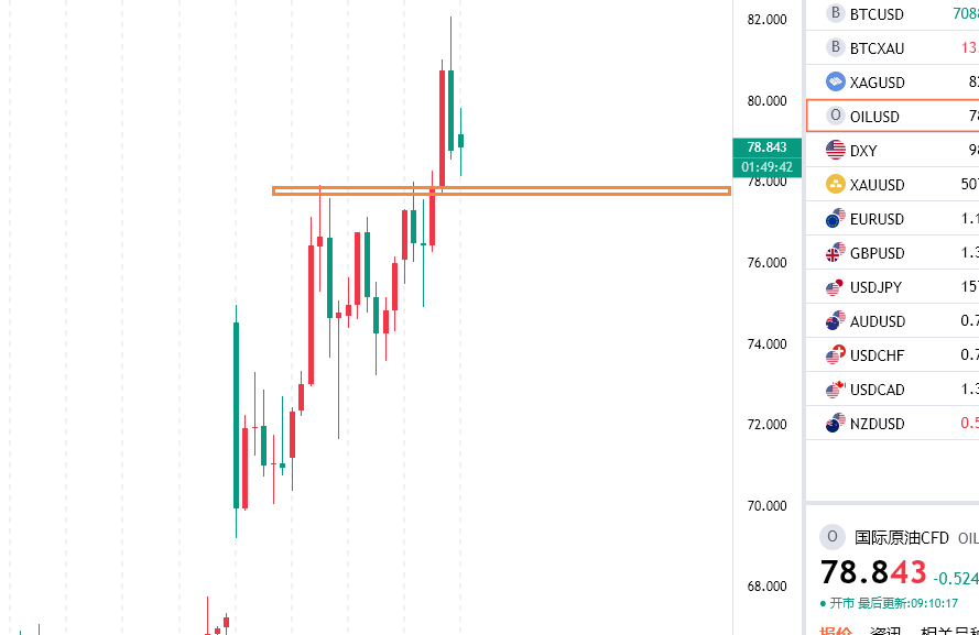 原油方面,由于中东战火的持续以及蔓延,伊拉克等产油国也是关闭油田,加上霍尔木兹海峡的持续封锁,短期从供应到运输上都给原油价格一定支撑,上个交易日晚间原油价格甚至一度冲击到了82一线然后再度回落,因为近期美国原油库存大幅回升,整体需求端支撑是有限的, 更多还是因为战火引发的担忧情绪引发的炒作,所以涨跌幅度和速度都很快,有点之前黄金的意思了,所以对待原油的话回踩顺势多为主,高位尽量多看少动不追涨即可,下方关注逐步上移的77附近支撑。