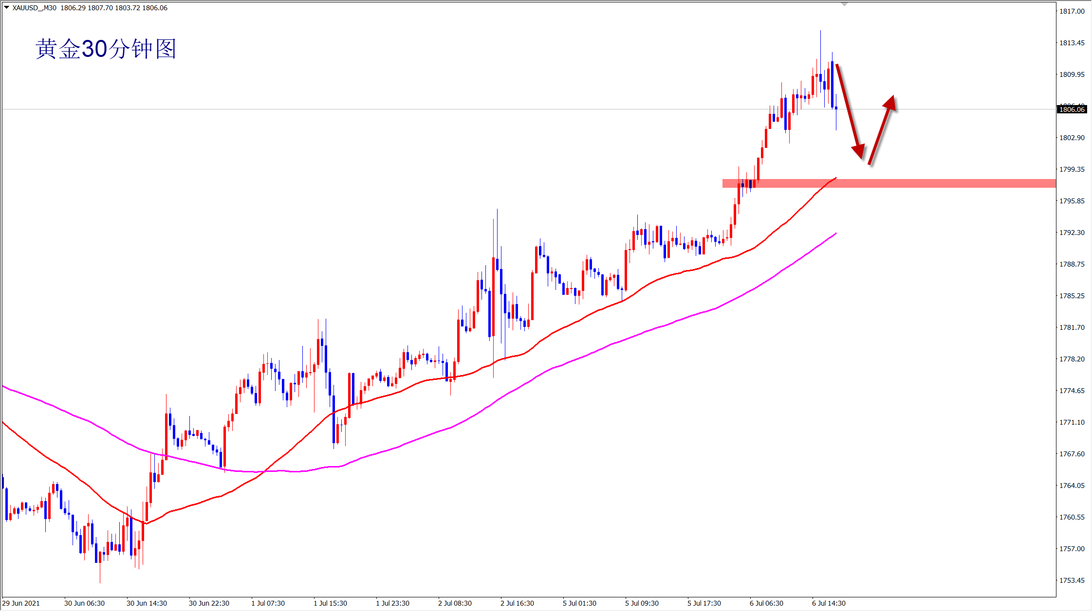 黄金大涨后需要调整,短线黄金会围绕1796-1814区域内运行,操作上守关键压力支撑位置,高抛低吸!
