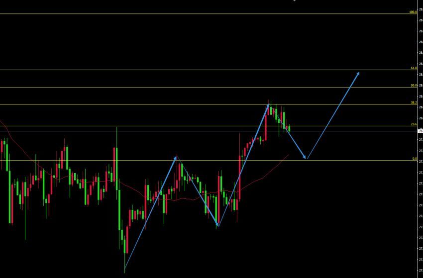 05-26 19:08从技术形态上看,日内白银走势很弱,幅度也没有拉开,徘徊区间也仅仅只有20美分,所以白银日间没有开仓机会,黄金比白银要抢手的多。白银需注意阻力位28.35一线。白银再一次的回归到主推动波浪结构当中。短线白银美盘需关注27.95一线的支撑,回调到这一区间可考虑入场做多,目标位28.35,止损20点即可。图表是1小时图