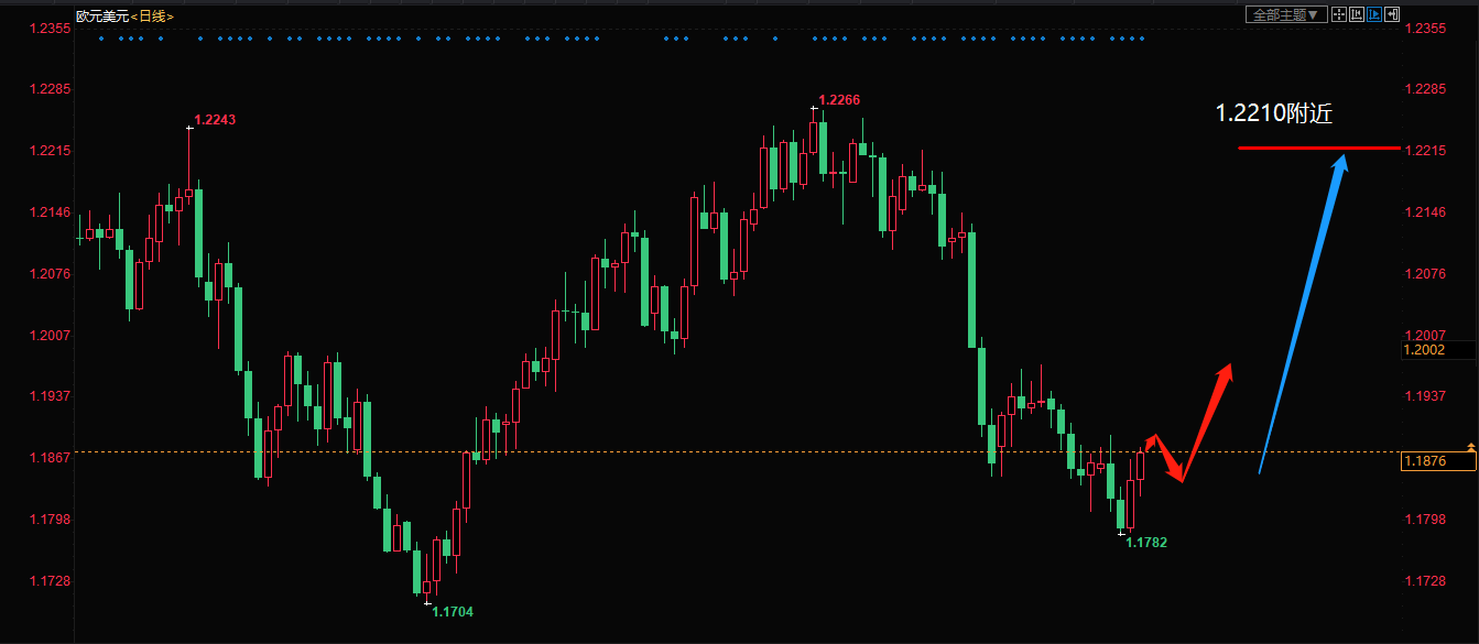 欧美上方的阶段性的行情目标位在1.2210附近。