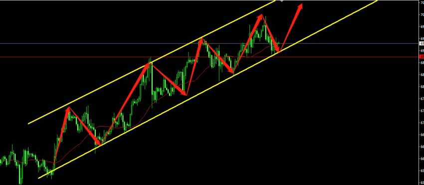 06-07 18:59消息面上,对于原油来说我们应该持续关注,本周伊核谈判的新进展,伊核协议本周四又将提上日程,一旦达成,伊朗的原油出口有望增加,对于油价来讲,供给预期增加会对原油价格造成一定的压力。技术形态上,原油有望继续冲高,重新站上70大关,这一关口从形态上来看,压力不大,只是市场的心理压力关口,朋友们应该意识到这一点。原油的上升通道目前没有改变,中线还没有做空理由,支撑看多的因素还是很强的。原油需要重点关注68.8~68.9区域的有效支撑,到达这一区域可以考虑轻仓尝试多单入场,风控点放在68.4下方,短期目标位看至69.8~70区域,上破70原油可继续看涨。图片是原油1小时图
