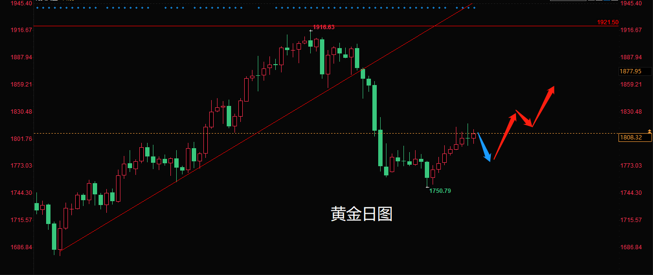 黄金下周走势,必然会如同下图所示: