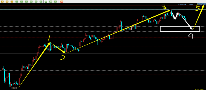 06-08 09:39原油最近的走势让做多者欢呼,抄顶的一次一次被止损,不看趋势只是一味自己想象市场最终会告诉你真理是什么!不过这个代价有些大。昨天原油我们继续给出多单策略,稳赚7美金没有任何问题。目前来看行情尝试向上发起冲击但美盘最终无功而返,同时出现了明显的九波延长浪,因此有理由相信此位置附近将会出现一次回落调整走势。考虑69.30附近卖出,风控69.80上方,目标68.50-68.00。结构上某一级别3浪已到尾声,将要开启4浪调整,后期调整结束后油价将再次回归上行走势。图片为原油2小时图