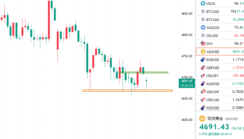 04-27[国际黄金]经过早上三小时的来回可以断定行情还是属于4701的支撑分水岭