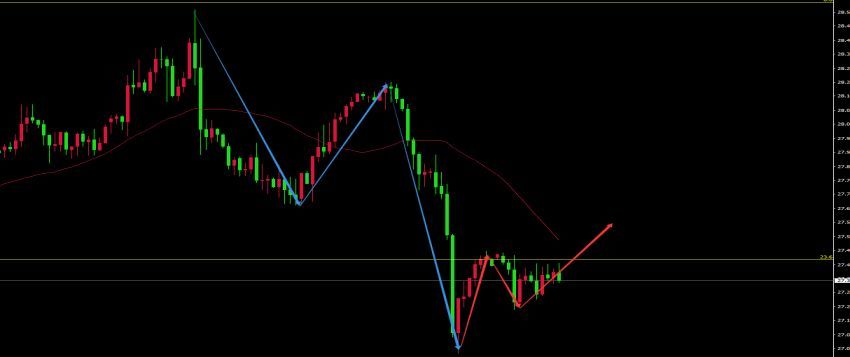 06-04 18:29白银日内的走势是弱于黄金的,白天徘徊于27.20~27.40小区间波动。周四白银险破27.00美元关口,同样白银多头也难逃一劫,前期银价主要运行在27.5~28.5美元之间,到了周四美盘间狂跌至27.00美元附近,随后小幅反弹。白银美盘短线建议27.15~27.10区域考虑做多,风控点26.95下方,目标位27.65附近。(图灵波浪理论)图表是1小时图