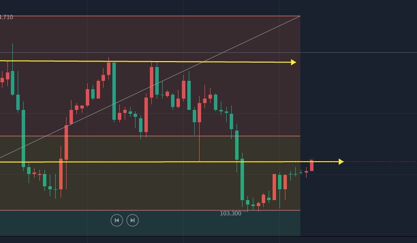 06-12 10:02美元102.6附近,也是月线支撑。日线周五收阳,周一关注103.7-103.3区间。