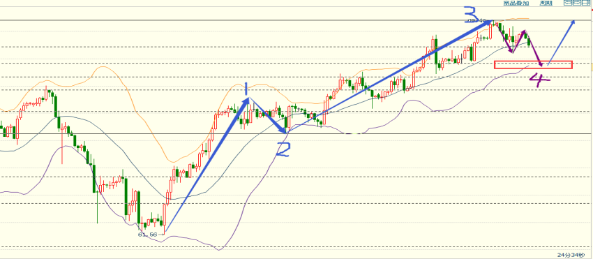 06-04 10:01原油昨日打破了大涨小回的震荡上行格局,日线高位出现十字星说明将要陷入回落调整阶段。目前的走势属于上涨当中的阶段性休整,预计日内反弹之后还会再次下跌,但是对于回落的幅度不要期望于过大,可以参考前一波的涨幅找到可靠的目标位。考虑在69.10附近卖出,风控69.45上方,目标68.10-67.80。结构上处于上行趋势当中的4浪调整阶段。(图灵波浪理论)图片为原油2小时图